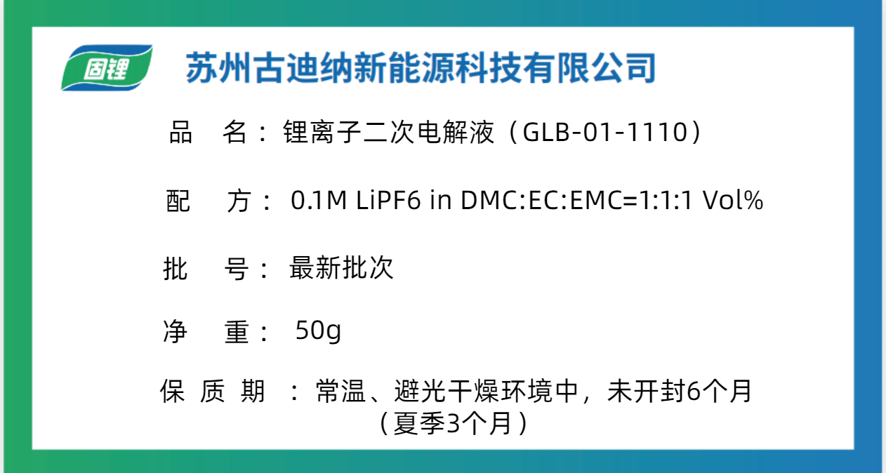 0.1M LiPF6 in DMC:EC:EMC=1:1:1 Vol% ,50g
