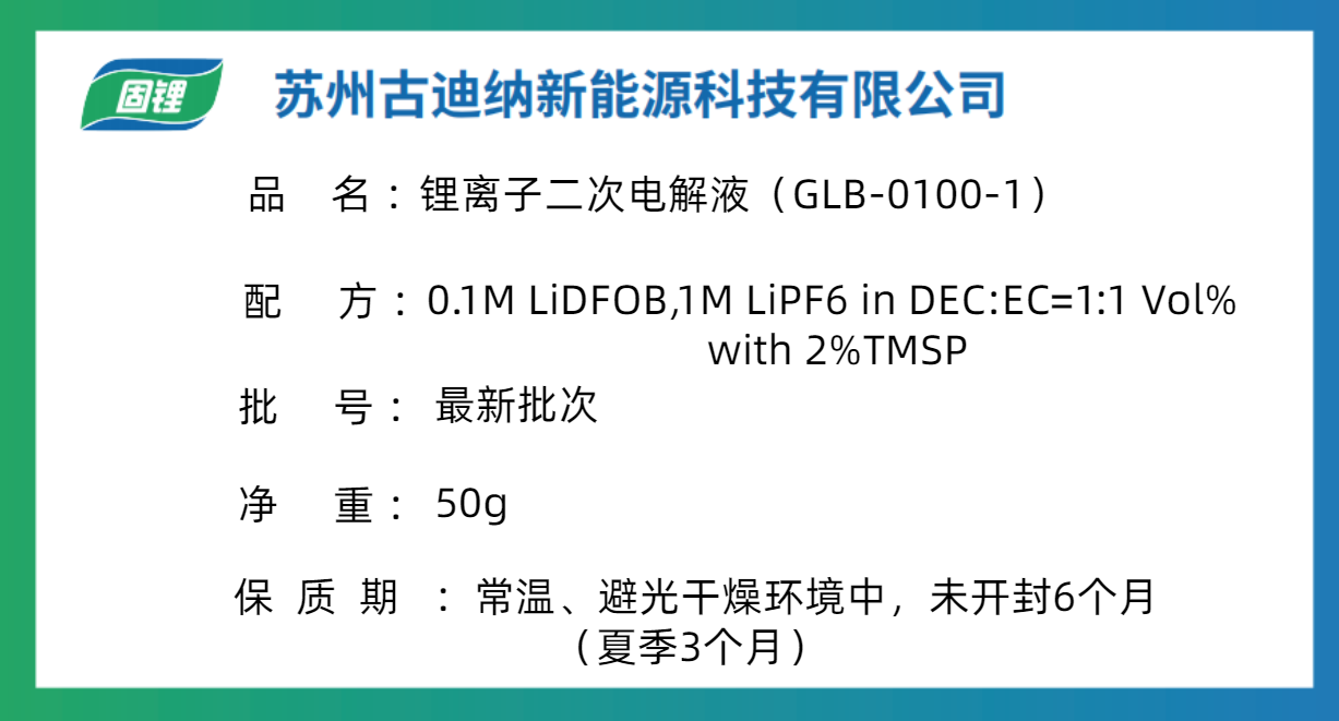 0.1M LiDFOB,1M LiPF6 in DEC:EC=1:1 Vol% with 2%TMSP ,50g