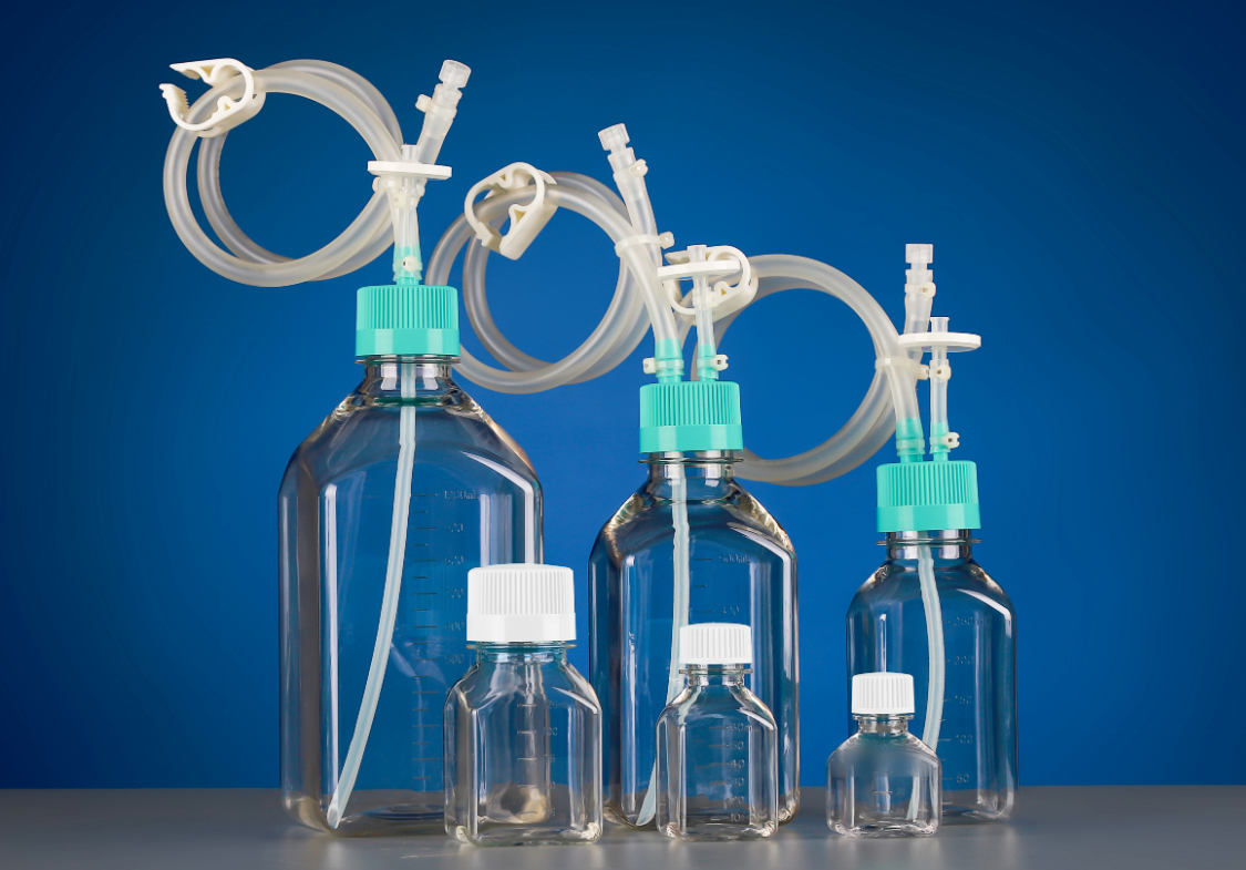 250mL PETG方形试剂瓶密闭系统,预装双向转移盖,灭菌
