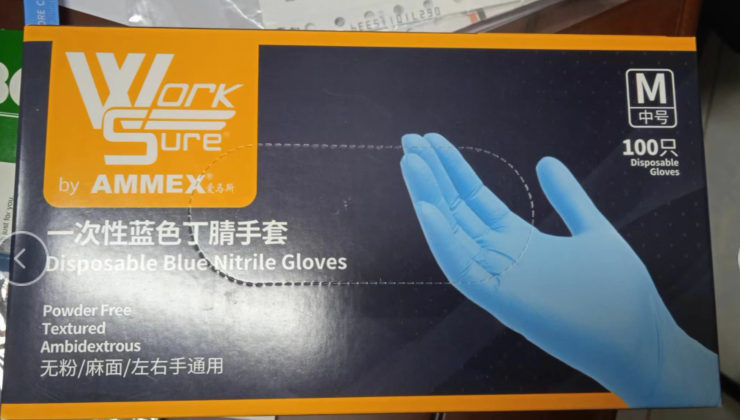 一次性蓝色丁腈手套,无粉(沃夫)加厚