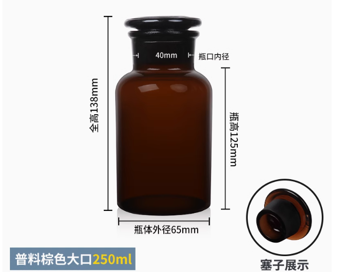250ml,棕色玻璃,广口试剂瓶 货号:AKX3298 | AKX精选 包装 :250ml,棕色,玻璃,1个 |