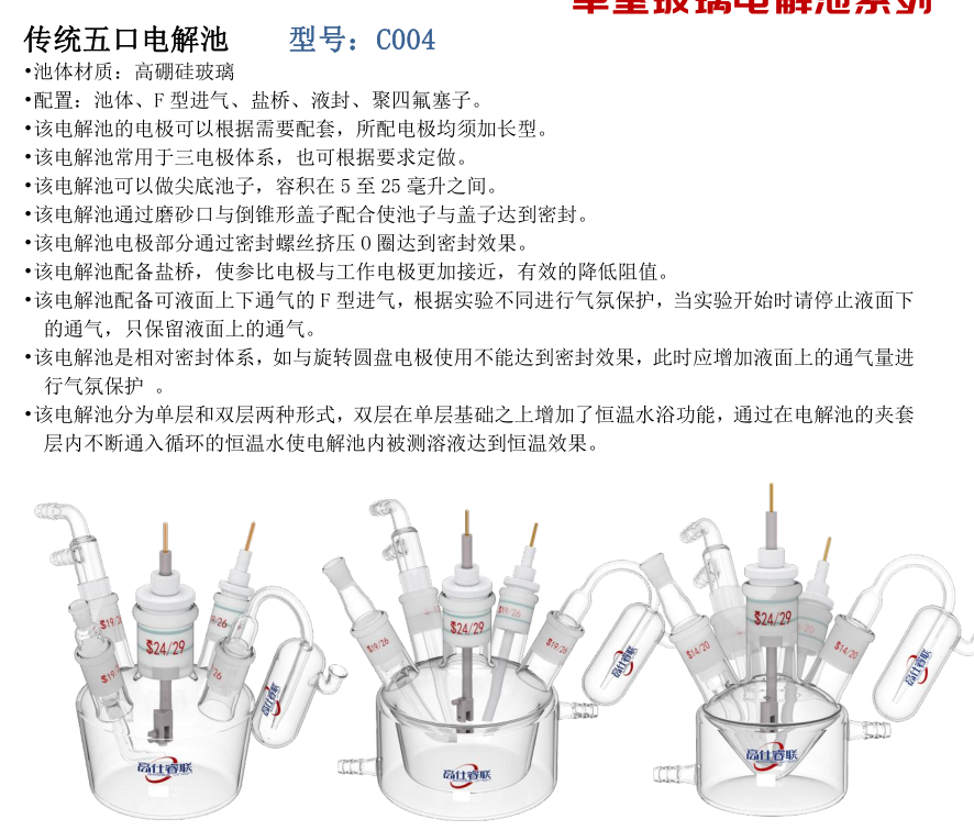 货号:2H 型可换膜电解池(相对密封)-C007-1-4